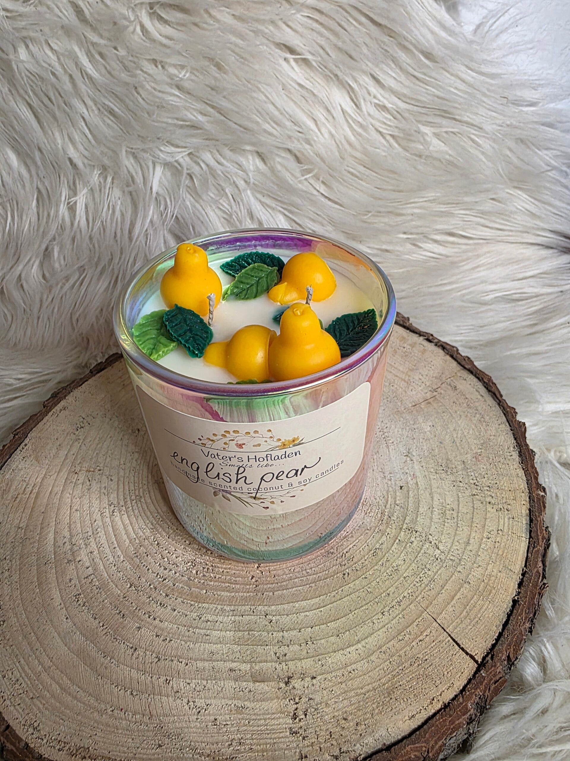 große irisierende Duftkerze english pear